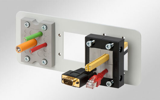 P?írubové plechy pro montá? kabelovych pr?chodek na kompaktní rozvádě?e, sk?íně a modulární rozvádě?e od Rittal a Fibox.