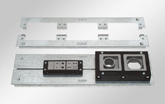 Dělená dna rozvádě?? vybavena vy?ezy pro pr?chodkové ráme?ky s roz?í?ením KEL / KEL-JUMBO.