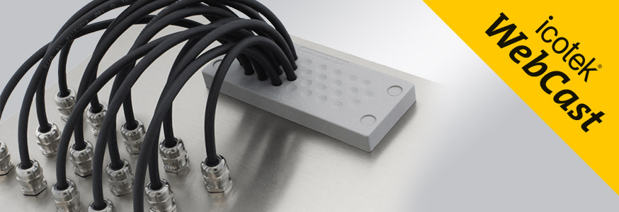 With the membrane based cable entry plates unterminated cables, pneumatic and hydraulic hoses or optical fibres can be quickly and space-savingly routed into control cabinets, panels or machines and be sealed with certified protection class up to IP68 (acc. to EN 60529) and UL Type 4X* (acc. to UL50 E). icotek cable entry plates are cost, space and time saving alternatives to traditional cable glands. Find out more ?