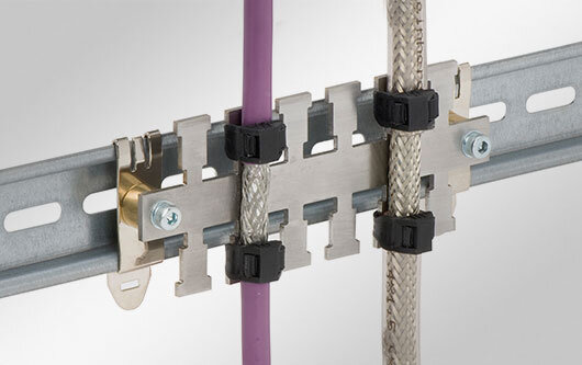 Il listello EMC-KEL-DS è perfettamente compatibile con le aperture e fori di fissaggio dei connettori industriali standard da 24 poli. Può essere scelta una apertura da 36 o da 46 mm a seconda dei cavi da alloggiare. Questa flessibilità è molto utile nel caso dei cavi intestati.