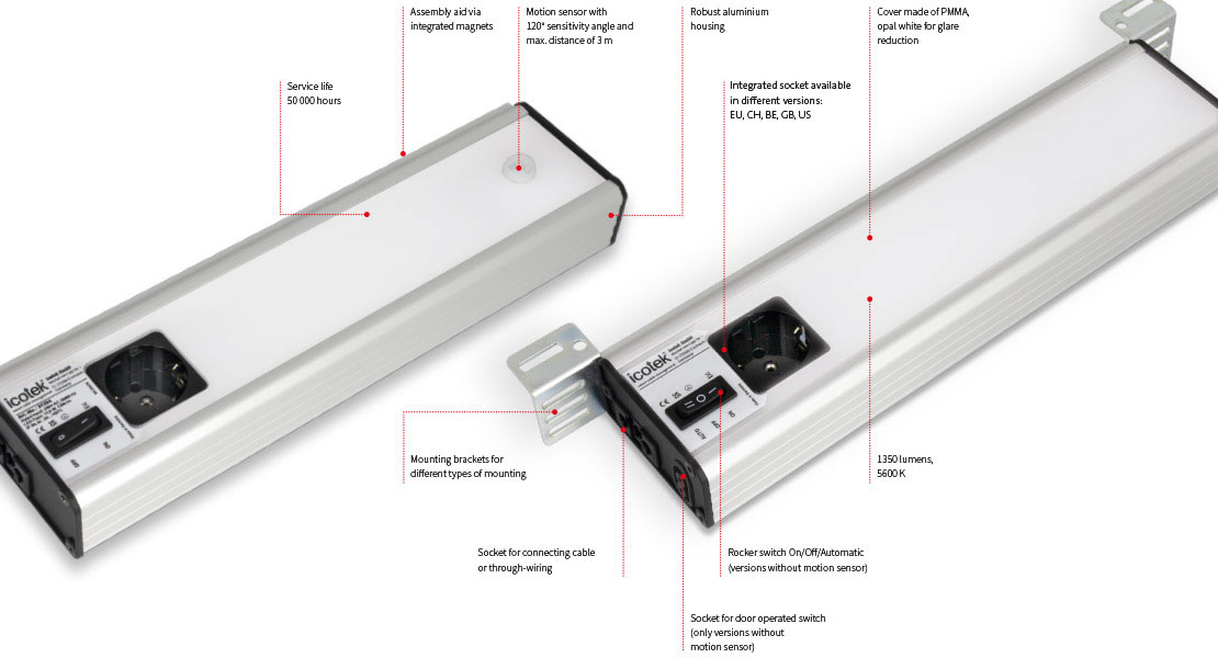 Praktyczn? dodatkow? zalet? oprawy ALU-LINE jest zintegrowane gniazdo. Jest to dost?pne w wersjach UE, CH, BE lub GB.