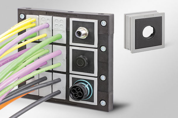 帶緊密穿芯的電纜引入框架適用于無(wú)工具安裝。適用于重型連接器的標(biāo)準(zhǔn)化開(kāi)孔。